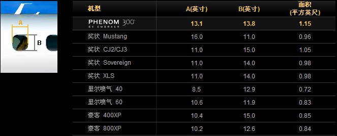 飛鴻300公務(wù)機窗戶尺寸對比 |
