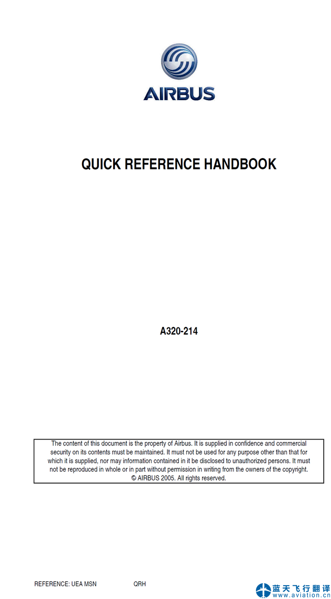 北京藍(lán)天飛行翻譯公司完成航空公司2018年3月13日版本空客A320機(jī)組操作手冊(cè)和快速檢查單翻譯任務(wù) 13 MAR 18 A320 FLIGHT CREW OPERATING MANUAL and QUICK REFERENCE HANDBOOK Translation 本次翻譯的空客機(jī)型乃空客A320系列中的A319-115、A319-112、A320-214等機(jī)型。 ![]() A320飛機(jī)機(jī)組操作手冊(cè) A320 FLIGHT CREW OPERATING MANUAL ![]() A320快速檢查單 A320 QUICK REFERENCE HANDBOOK