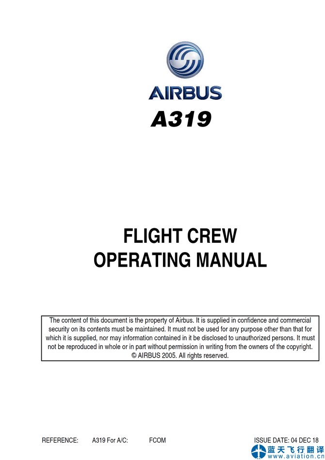 承接2018年12月4日版本空客公務(wù)機(jī)ACJ319飛行機(jī)組操作手冊(cè)(FCOM FLIGHT CREW OPERATING MANUAL)和快速檢查單(QRH QUICK REFERENCE HANDBOOK)翻譯任務(wù) 04 DEC 18 ACJ319 FLIGHT CREW OPERATING MANUAL and QRH QUICK REFERENCE HANDBOOK Translation
