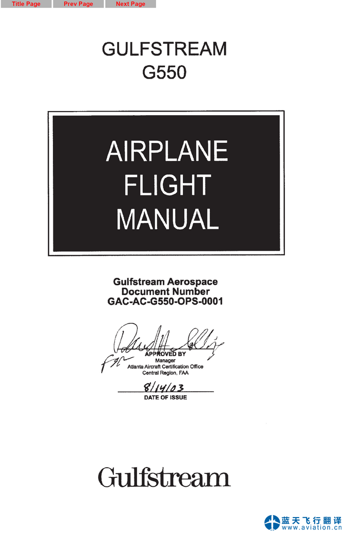 北京藍(lán)天飛行翻譯公司完成大型公務(wù)機(jī)公司的2020年3月30日,第42版灣流G550全套飛行手冊翻譯任務(wù) G550 Flight Manual Translation