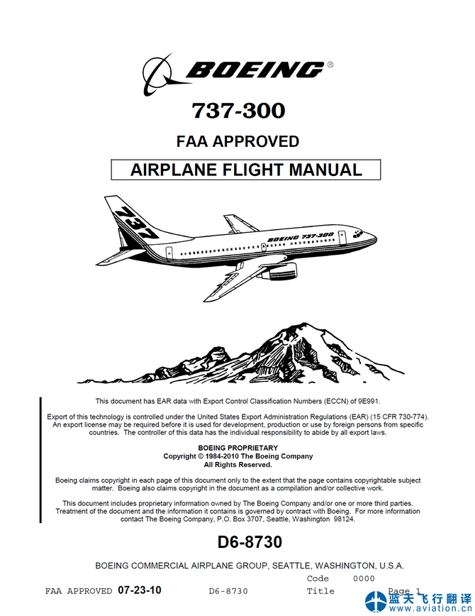 北京藍(lán)天飛行翻譯公司承接航空公司737-300飛機(jī)飛行手冊(cè)翻譯任務(wù) 737-300 Airplane Flight Manual Translation